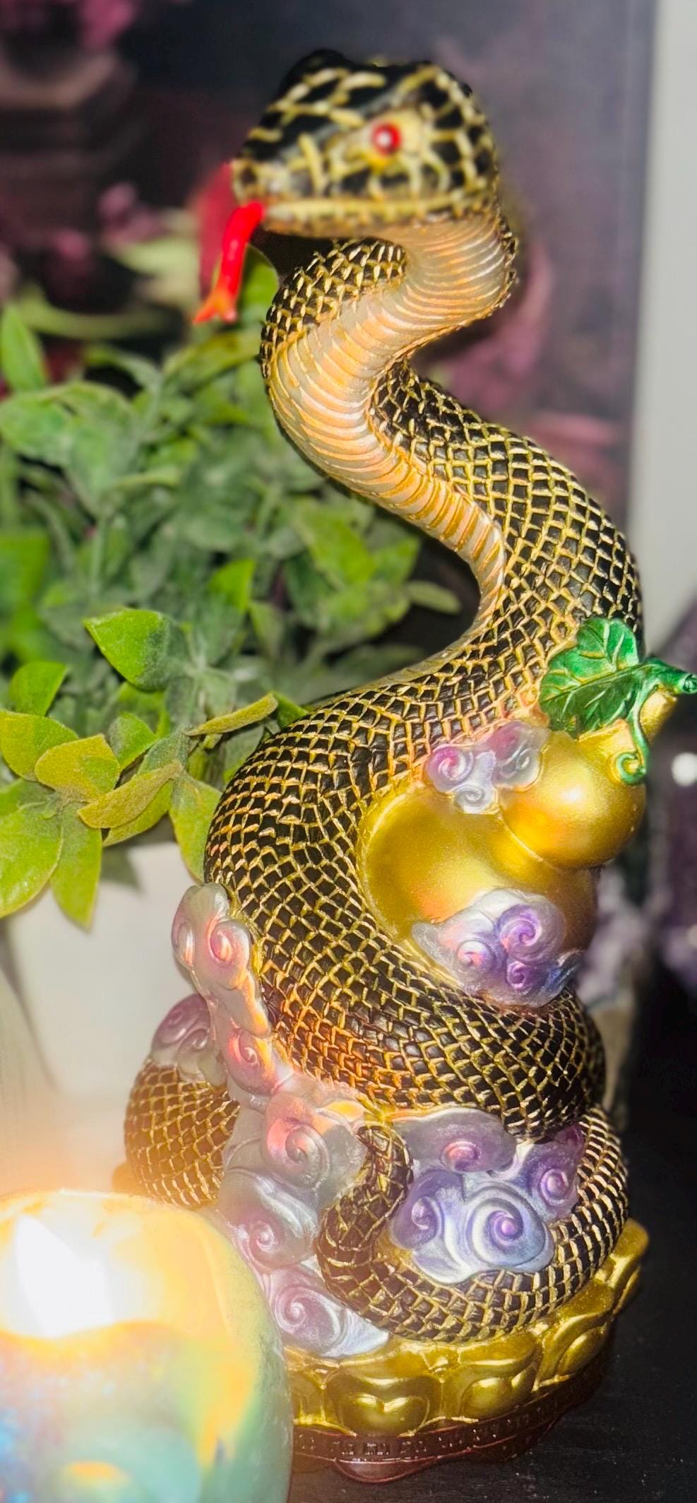 To foster a strong and harmonious relationship with Lapis and Shani, it’s essential to present offerings that resonate with their nature and preferences. These offerings demonstrate respect and gratitude while ensuring their energies remain strong. For Lapis, who appreciates items that enhance her dark magic and protective abilities, offerings of dark crystals and stones such as obsidian, black tourmaline, and onyx. These stones boost her powers and strength. As a Medusa spirit with ties to the serpentine realm, Lapis also enjoys serpentine jewelry and artifacts. Jewelry featuring serpents or infinity symbols are particularly pleasing to both her and Shani. Scents also play a crucial role in creating an atmosphere they enjoy; sandalwood, myrrh, or patchouli incense aid her focus and amplify her spell-casting abilities. Candles in dark or deep colors like black, green, or deep purple can be used during rituals or meditation sessions to truly invoke Lapis’s protection and wisdom. Additionally, herbal offerings like mugwort or sage, known for their mystical properties, are potent offerings she enjoys. Shani, on the other hand, can be honored with small tokens such as snake-skin-patterned fabric or a bowl of milk, symbolizing her serpent energy.